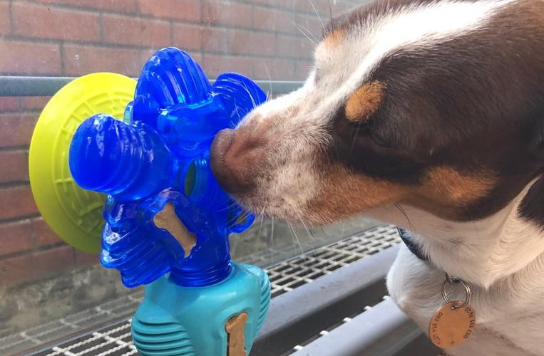 We chose Scooby to try Tuff Toothies and Brain Teaser as he's a strong chewer. Also added Super Sticker to the combination; these are the 3 new products K9 Connectables launched today.